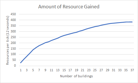 In the recent 4.5 patch, Edain introduced or rather re-introduced a mechanic from vanilla ROTWK: inflation. This was part of their recent efforts to make comebacks from losing mechanics possible by lessening the impact of map control and of a superior economic advantage. In the past a player that had won early battles could build additional economy buildings on external plot and take an early lead that had a tendency to snowball completely out of control, now, with every building that the player purchases ALL economy building produce slightly less. Which means you still have a higher cash flow than before but just not as much. Below you can see a graph showing at what percent of efficiency all buildings produce based on how many you have. For example, if you have 8 buildings they all produce at 85% efficiency, say each building produces 32 resources per tick, then you will be making (32 * 8) * 0.85 = 218 resources per tick (a resource tick is approximately 15 seconds. In 4.4.1, a player with the same settings would have been making 256 resources per tick.